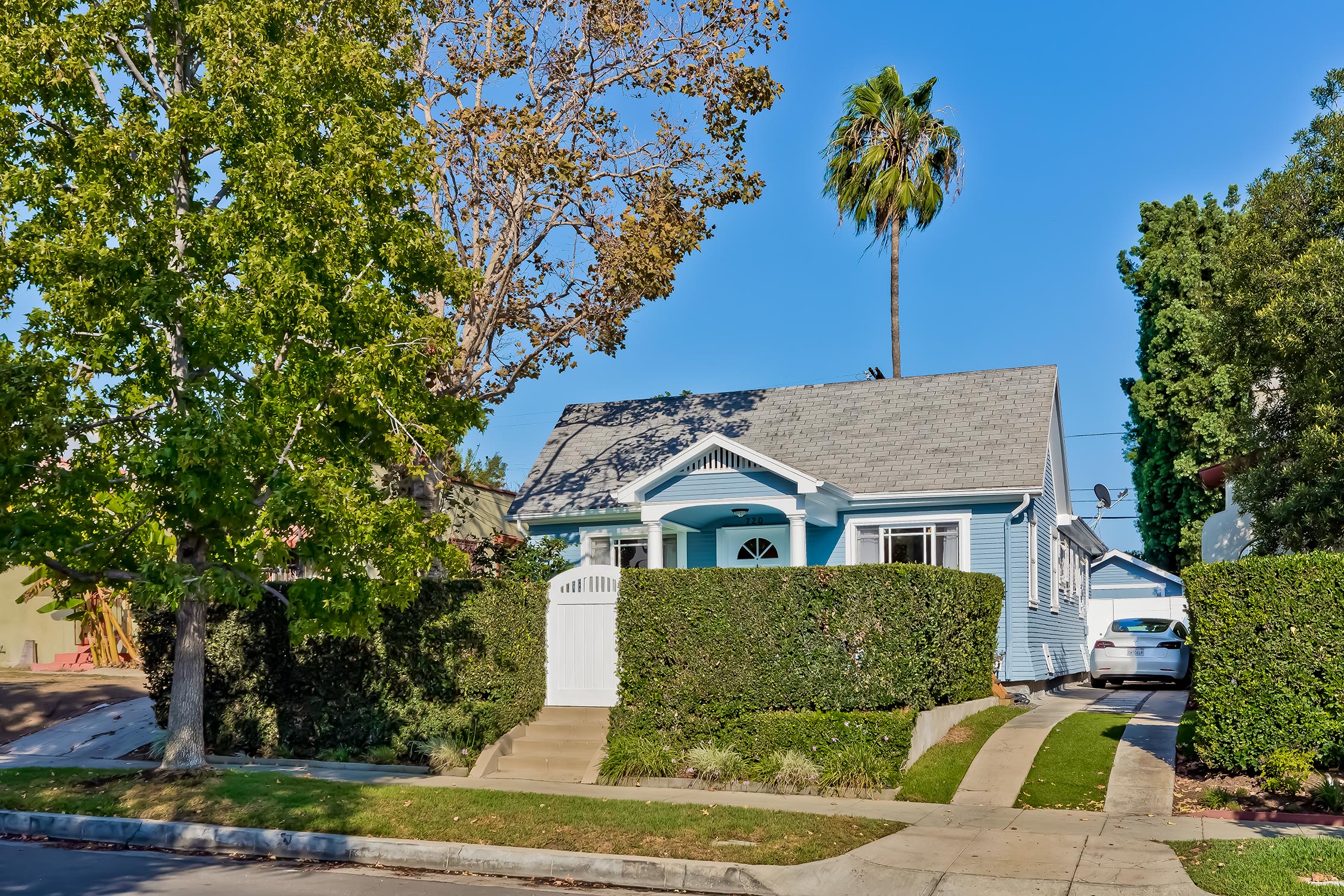 Sweet and charming Melrose Village California Bungalow circa 1923. Incredible natural light fills this home! The hedged front yard and adorable front porch greet you with warmth while providing a sense of privacy. There are 2 bedrooms (primary has vaulted ceilings), 1 updated bathroom w/ skylight, formal living & dining room w/ amazing vaulted ceilings, large cook's kitchen w/ stainless steel appliances, hardwood floors, and central AC. Garage has been converted to an excellent office/bonus room w/ AC unit & separate storage room. Great grassy backyard beautifully landscaped with plenty of room to garden and frolic. Driveway can accommodate parking for multiple cars. Upgrades include bolted foundation, copper plumbing, and EV charger. Located near exciting shopping & dining on Melrose & Beverly Blvd, close to The Grove, Trader Joes, Whole Foods, Poinsettia Park (tennis anyone?), Pan Pacific Park, West Hollywood, Runyon Canyon, and some of the best restaurants, pubs, cafe's, art galleries, and boutiques in LA! This is your Oasis in the City convenient to everything you need and want. An absolute GEM.